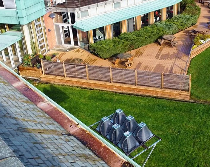 Only SolarisKit's unique prismatic shaped solar collector have been designed for flat-roof buildings. With a height of less than 500mm, SolarisKit provides a solar hot water solution which is modern, attractive, and discrete.
